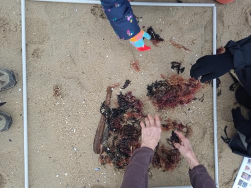 Est-ce qu'il y avait moins d'algues échouées cette année sur la plage d'Hendaye ? Pas de réponse pour l'instant mais on avait du mal à en trouver le 7 février pour notre étude !